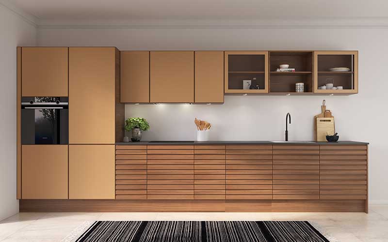 Lamellerne er fremstillet i massivt, håndsorteret træ, som sikrer et harmonisk farvespil og et roligt, nordisk udtryk – velegnet til både moderne og klassiske køkkendesigns.