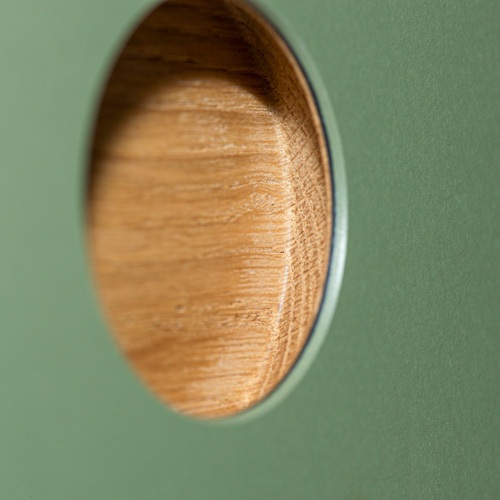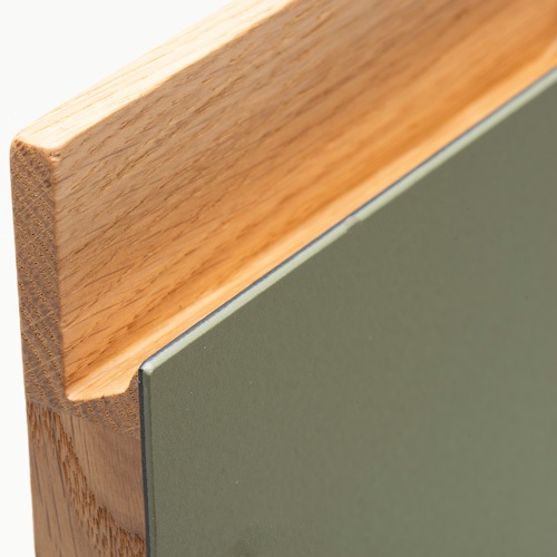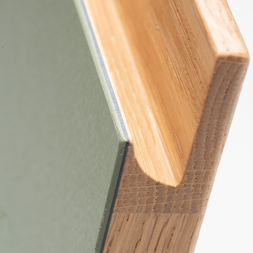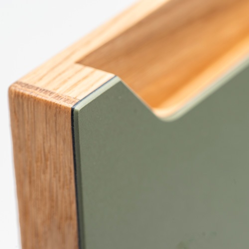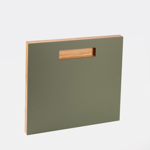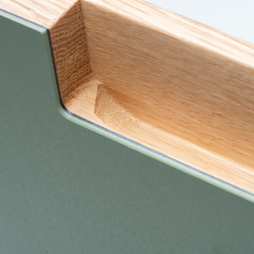 Du kan frit kombinere materialer og farver – fx linoleum i matte nuancer med massivt træ, eller diskrete trægreb i finérfronter. Vores In-Line-30×150, 4-kant, R15