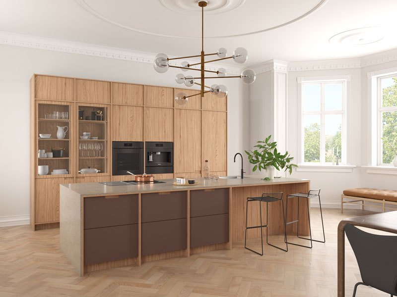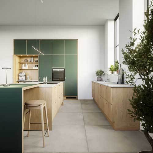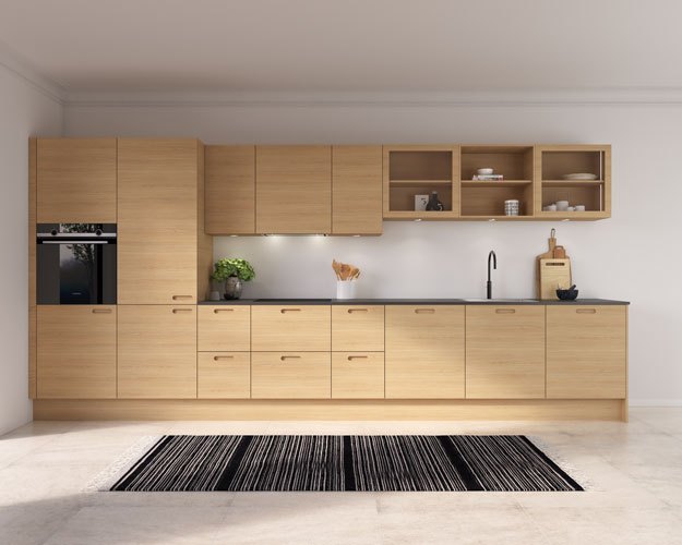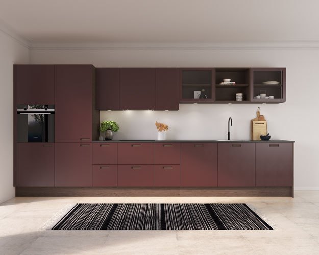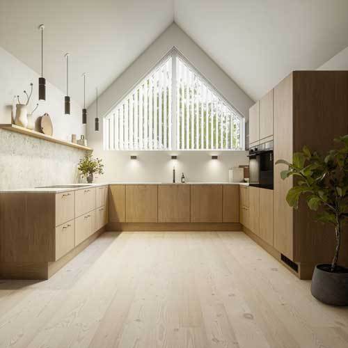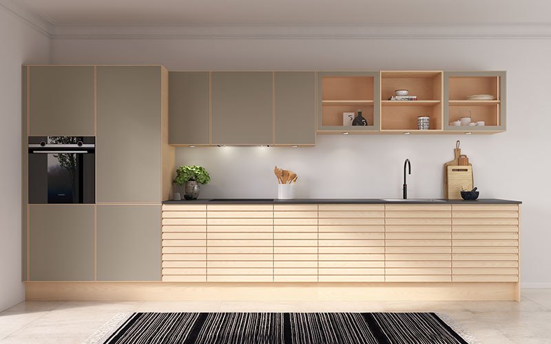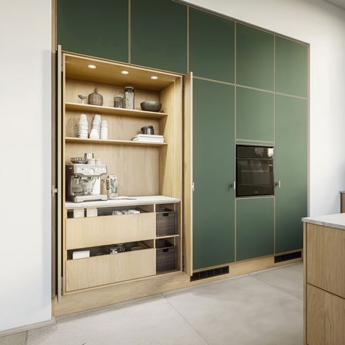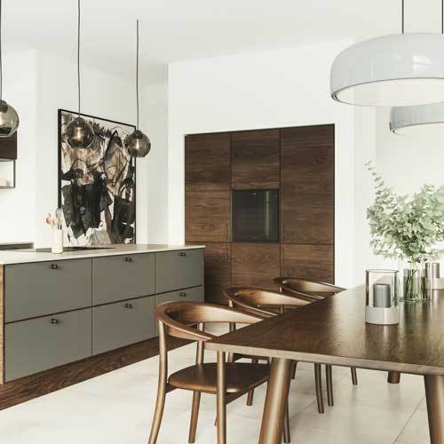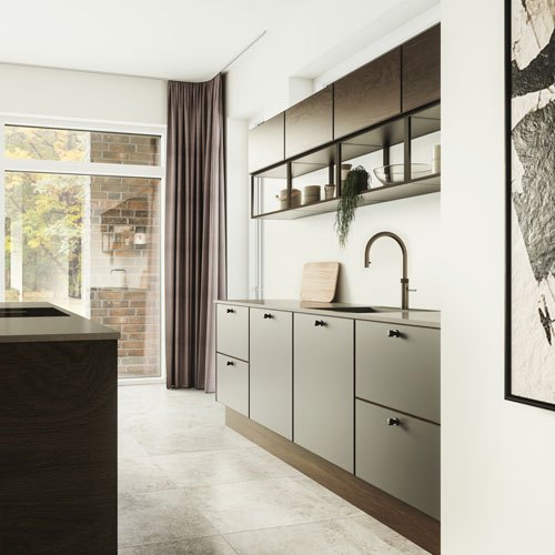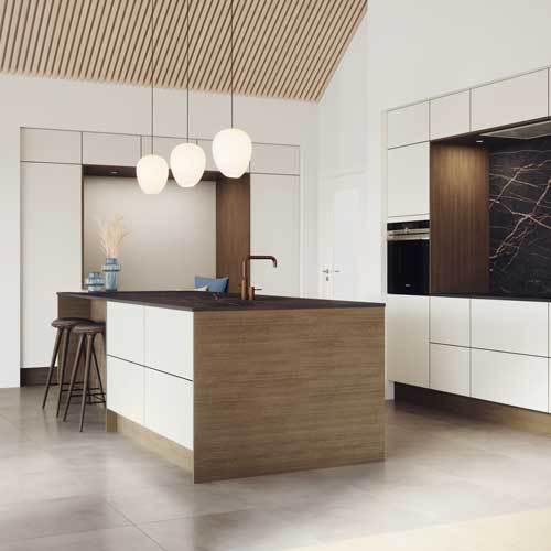 Galleriet viser vores brede erfaring med materialer som laminat, linoleum og finér – kombineret med f.eks. trælister, vitrinelåger og grebsfri løsninger. Alt sammen skabt med fokus på ensartet kvalitet og funktionel æstetik.