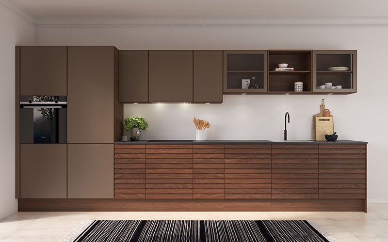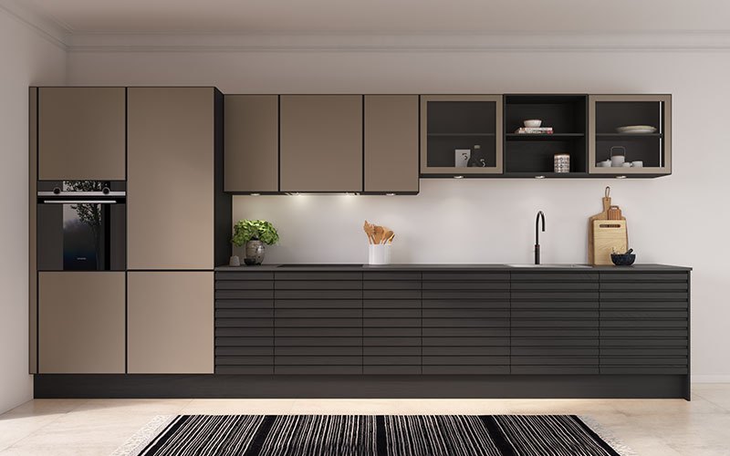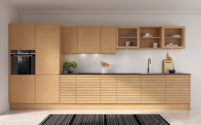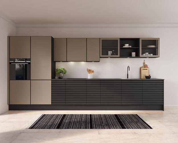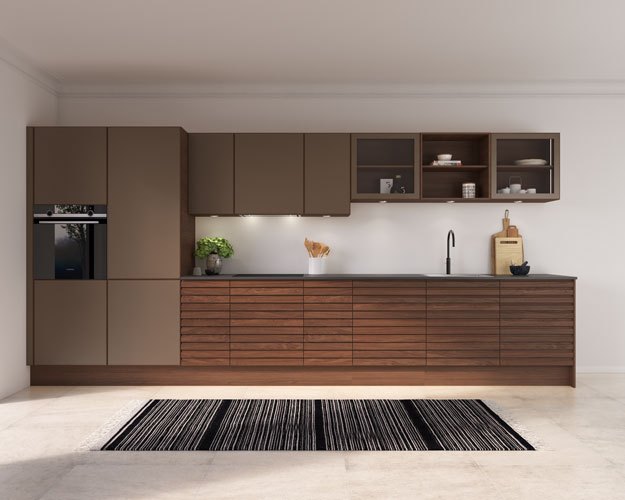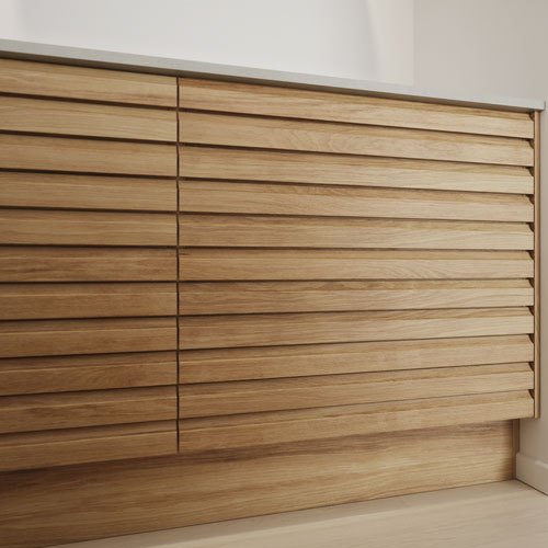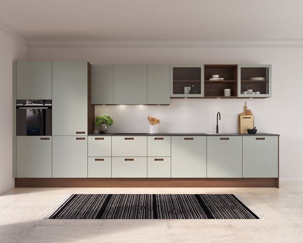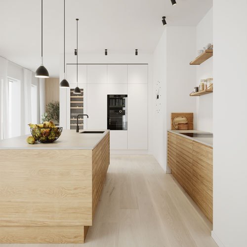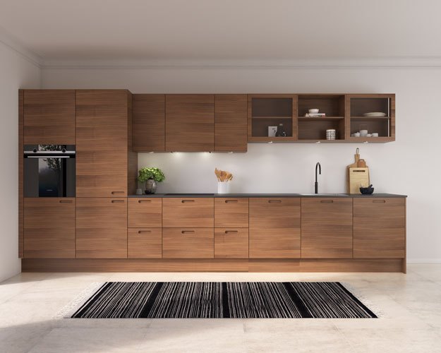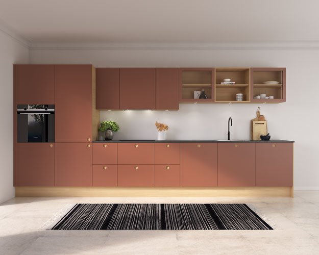 Galleriet viser vores brede erfaring med materialer som laminat, linoleum og finér – kombineret med f.eks. trælister, vitrinelåger og grebsfri løsninger. Alt sammen skabt med fokus på ensartet kvalitet og funktionel æstetik.